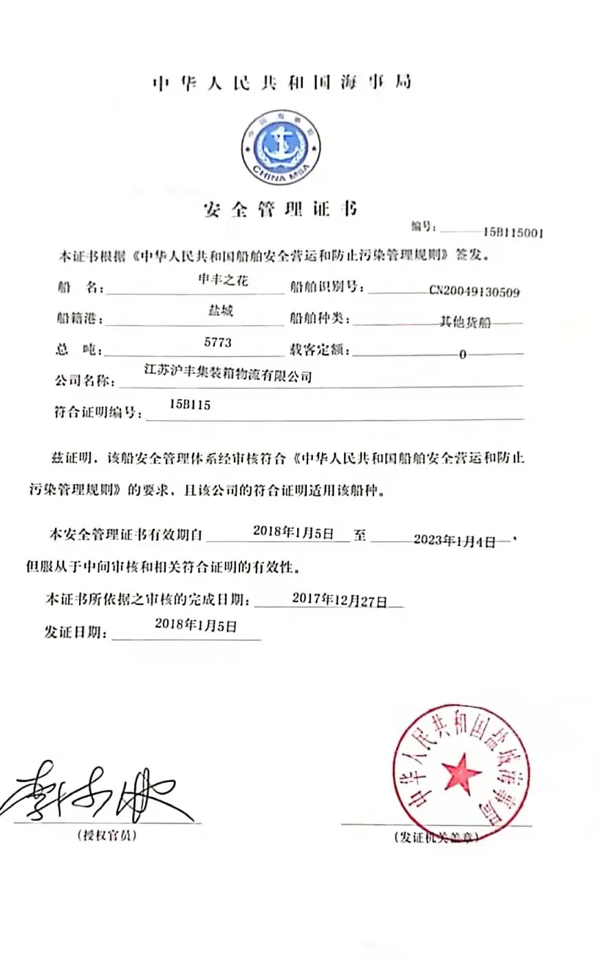 另外,滬豐公司代表船“申豐之花”輪接受了審核組對船舶管理體系實施情況的中間審核,順利通過并取得中間審核簽注,這意味著公司的船舶安全管理及防污染工作得到認可,對公司船舶運行具有重要意義,為建設綠色生態、智慧便捷、安全高效港口起到了推動作用。