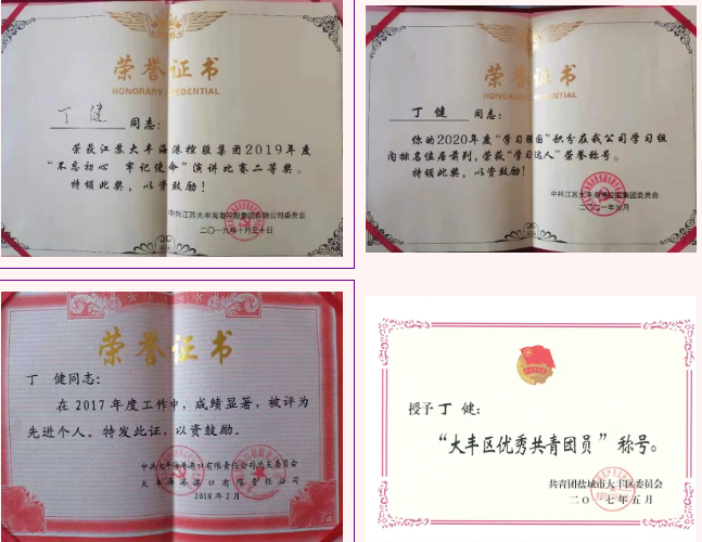 “這近十年的時間,我看到了我們大豐港人堅守崗位,愛崗敬業,一群大豐港人不斷追夢、筑夢,才有了我們大豐港今天的繁榮。在碼頭上,我們時常聽到老碼頭人講大豐港籌建時,我們的領導深冬穿著黃大衣在碼頭值夜班,沒有躲風避雨的地方,就躲到墩子后面避風,稍微暖和一點又要督促工程,日夜兼程。而如今的大豐港有房子、有空調、有配套齊全的設施。我們是踩著前輩們架好的云梯往上爬,只要我們繼續努力,大豐港的發展前景會越來越好。每每在順利拿下生產任務的那一刻,我的內心總是如飲甘醴,如啜清泉。”丁健說道。工作雖苦,丁健為了自己心中的那份責任,為了大豐港的發展,執著向前,風雨無阻。