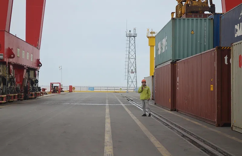 丁健同志現場指揮集裝箱作業